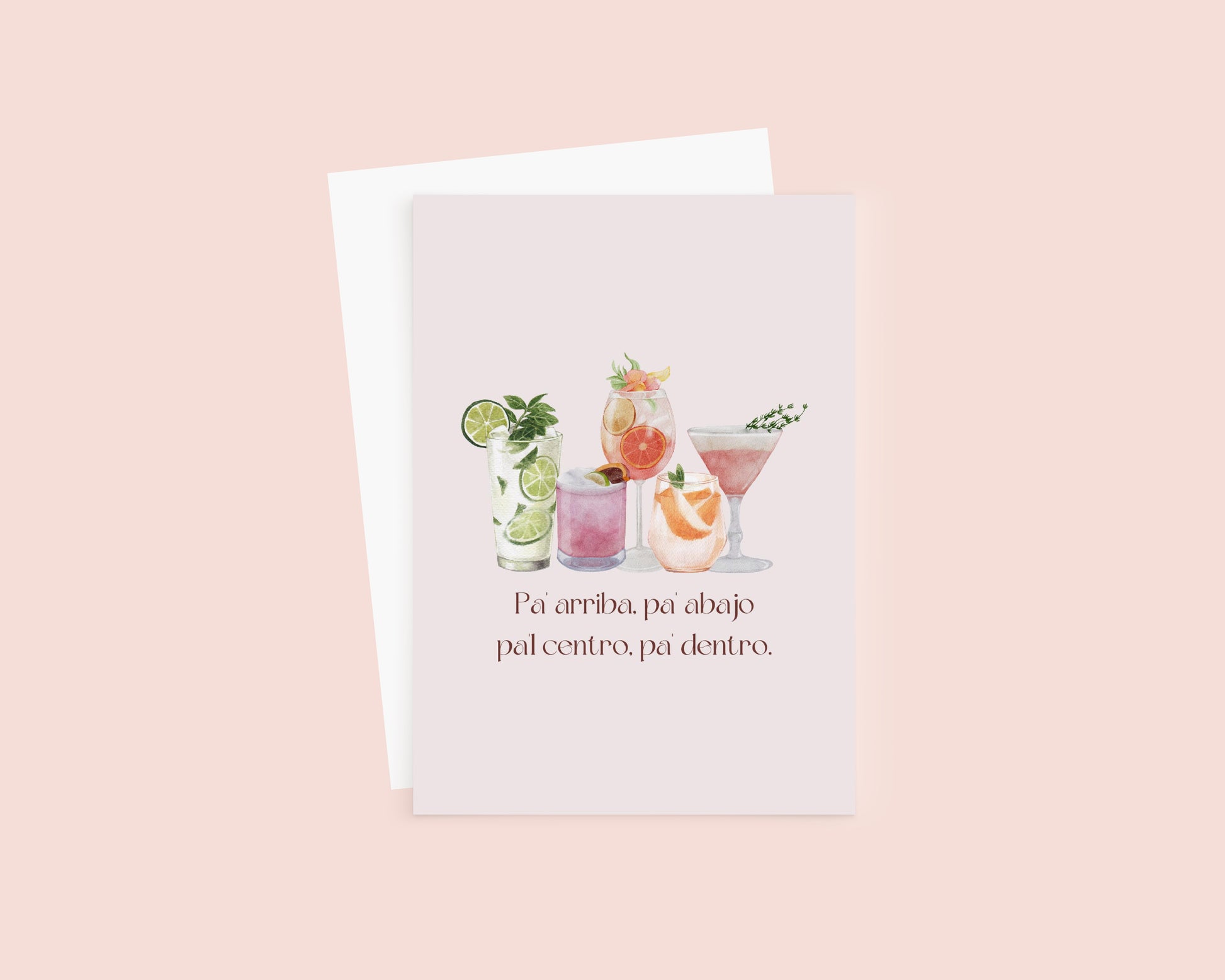 Raise a glass and celebrate in true Latinx style with our 'Pa' Arriba, Pa' Abajo, P' Al Centro, Pa' Dentro' greeting card! Whether it's a birthday, achievement, or any special occasion, say '¡Salud!' in the most fun way.