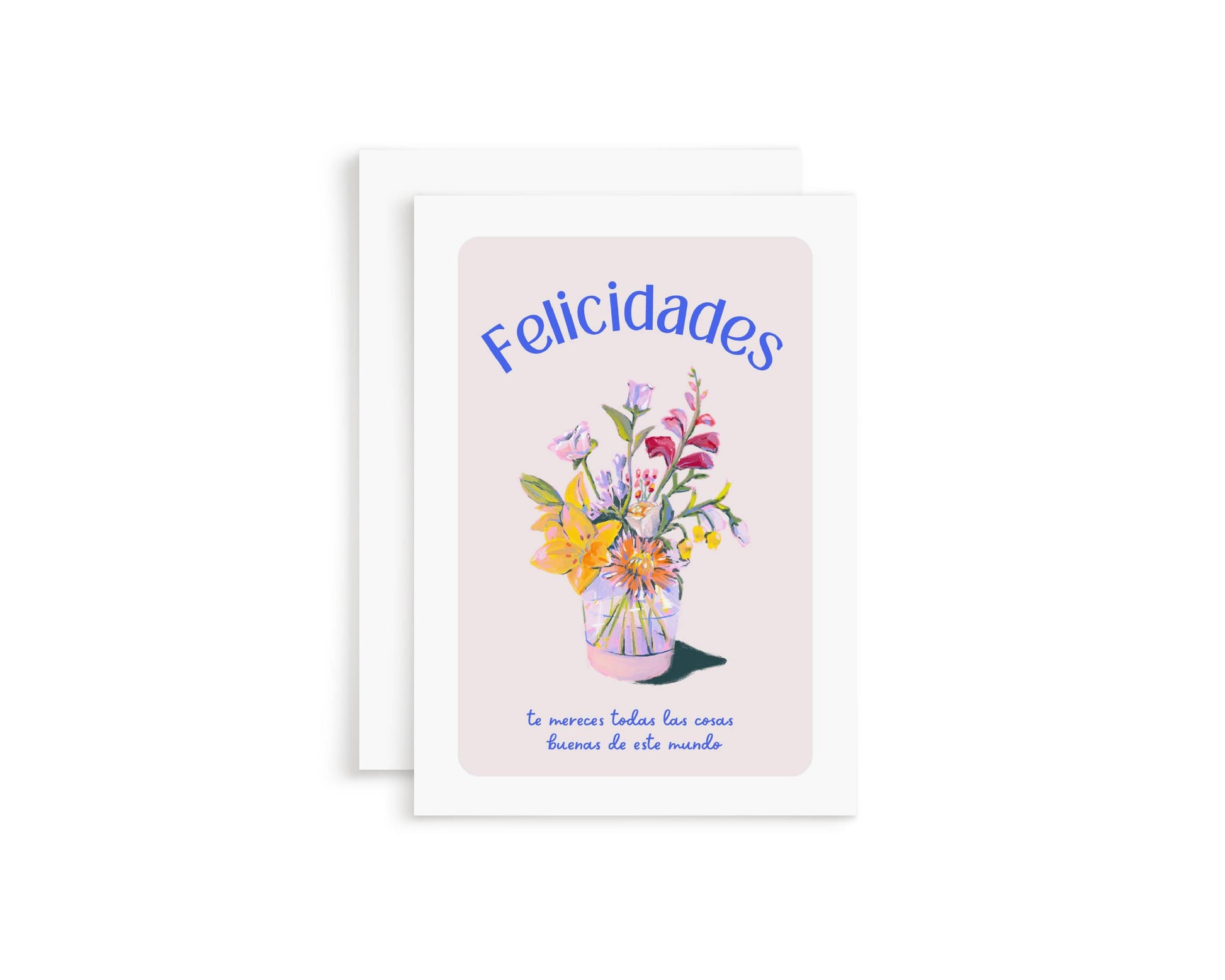 Send your heartfelt congratulations with our 'Felicidades Te Mereces Todas Las Cosas Buenas De Este Mundo' greeting card in Spanish. This versatile card is perfect for celebrating achievements, milestones, and special moments with friends, family, colleagues, and loved ones. Make every congratulatory occasion even more memorable with this Spanish card.