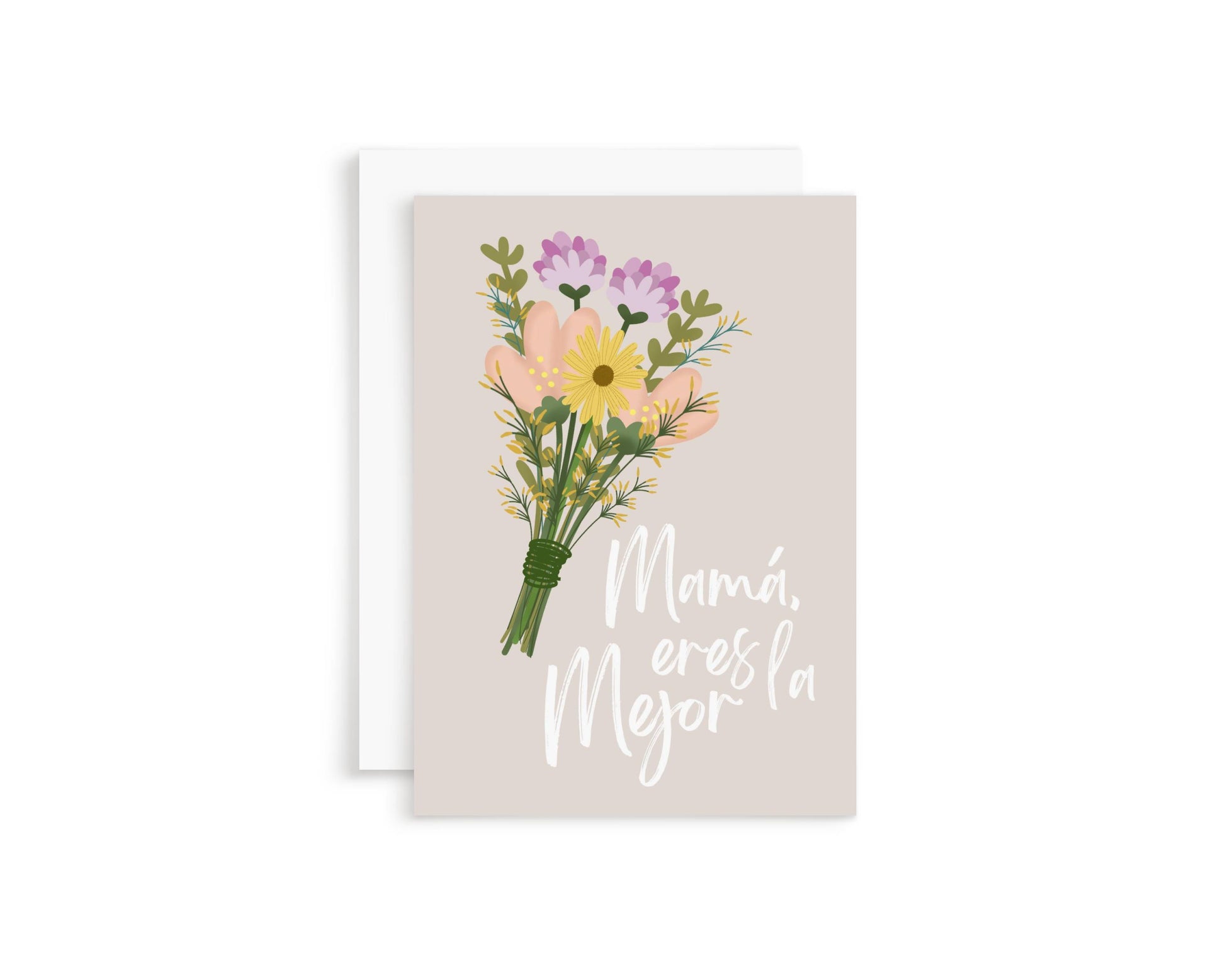Express your love and gratitude with our 'Mamá, Eres la Mejor' Spanish greeting card, featuring a beautiful bouquet of flowers. It's the perfect way to say 'Mom, you're the best!' and show your deep appreciation. Make her day blossom with love!